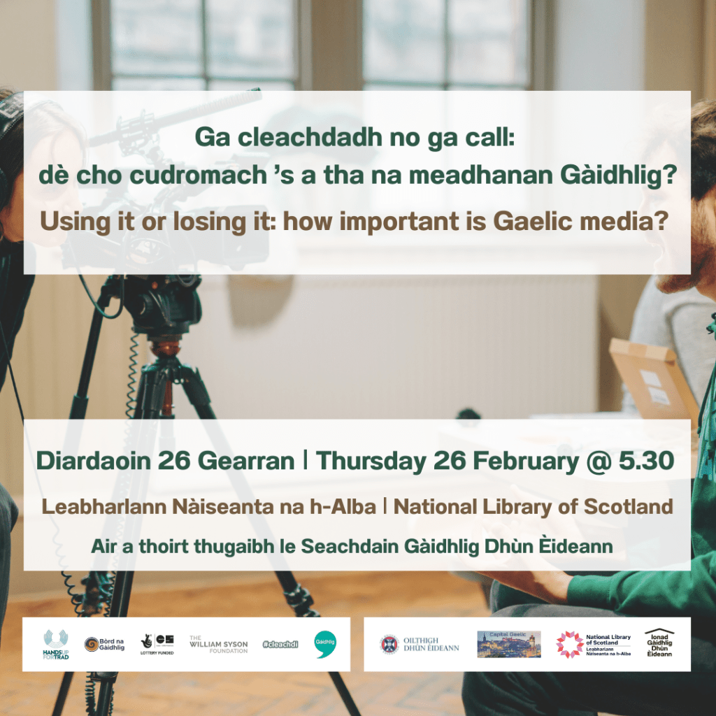 Drawing on the Gaelic Week 2026 theme – ‘Use it, or lose it‘ – on 26 February Gaelic broadcasting experts Matthew MacIver, Cathy MacDonald & Calum Maclean, debated the importance of Gaelic media in encouraging Gaelic use.